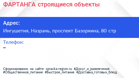 ФАРТАНГА, строящиеся объекты по адресу Ингушетия, Назрань, проспект Базоркина, 80 стр в дальнейшем Организация, размещена в следующих категориях: