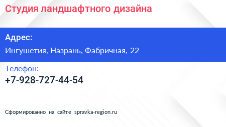 Студия ландшафтного дизайна по адресу Ингушетия, Назрань, Фабричная, 22 в дальнейшем Организация, размещена в следующих категориях: