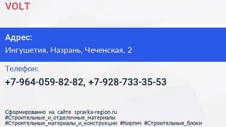 VOLT по адресу Ингушетия, Назрань, Чеченская, 2 в дальнейшем Организация, размещена в следующих категориях: