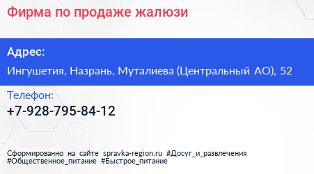Фирма по продаже жалюзи по адресу Ингушетия, Назрань, Муталиева (Центральный АО), 52 в дальнейшем Организация, размещена в следующих категориях: