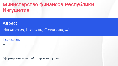 Министерство финансов Республики Ингушетия по адресу Ингушетия, Назрань, Осканова, 41 в дальнейшем Организация, размещена в следующих категориях: