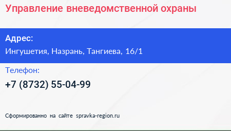Управление вневедомственной охраны по адресу Ингушетия, Назрань, Тангиева, 16/1 в дальнейшем Организация, размещена в следующих категориях: