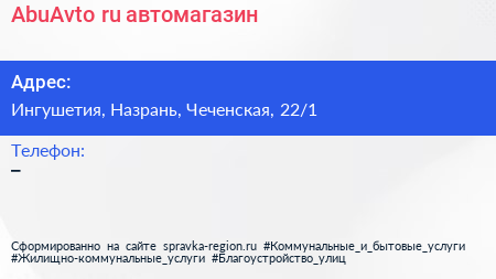 AbuAvto.ru, автомагазин по адресу Ингушетия, Назрань, Чеченская, 22/1 в дальнейшем Организация, размещена в следующих категориях: