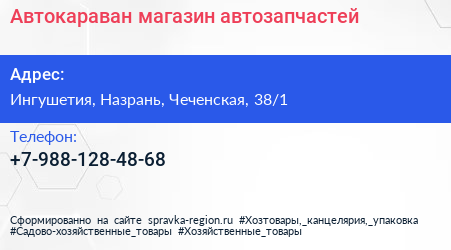 Автокараван, магазин автозапчастей по адресу Ингушетия, Назрань, Чеченская, 38/1 в дальнейшем Организация, размещена в следующих категориях:
