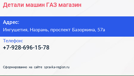 Детали машин ГАЗ, магазин по адресу Ингушетия, Назрань, проспект Базоркина, 57а в дальнейшем Организация, размещена в следующих категориях: