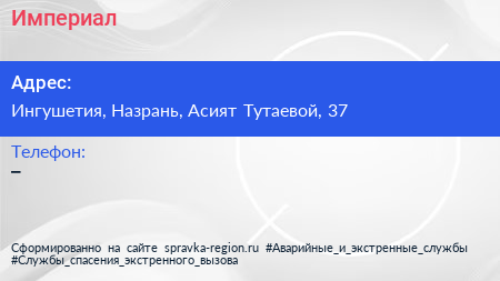 Империал по адресу Ингушетия, Назрань, Асият Тутаевой, 37 в дальнейшем Организация, размещена в следующих категориях: