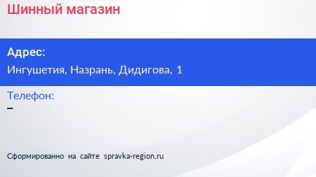 Шинный магазин по адресу Ингушетия, Назрань, Дидигова, 1 в дальнейшем Организация, размещена в следующих категориях:
