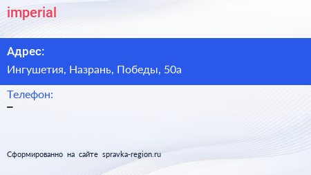 imperial по адресу Ингушетия, Назрань, Победы, 50а в дальнейшем Организация, размещена в следующих категориях: