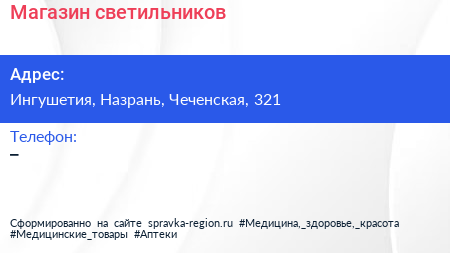 Магазин светильников по адресу Ингушетия, Назрань, Чеченская, 321 в дальнейшем Организация, размещена в следующих категориях: