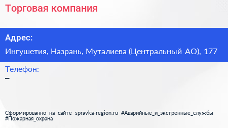 Торговая компания по адресу Ингушетия, Назрань, Муталиева (Центральный АО), 177 в дальнейшем Организация, размещена в следующих категориях: