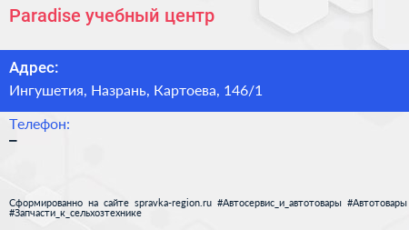 Paradise, учебный центр по адресу Ингушетия, Назрань, Картоева, 146/1 в дальнейшем Организация, размещена в следующих категориях: