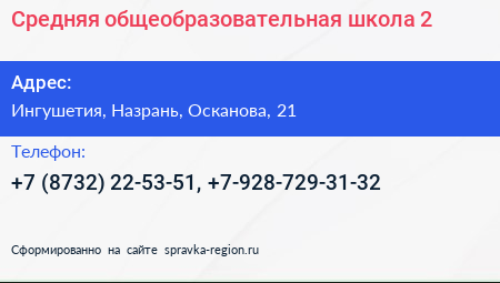 Средняя общеобразовательная школа №2 по адресу Ингушетия, Назрань, Осканова, 21 в дальнейшем Организация, размещена в следующих категориях: