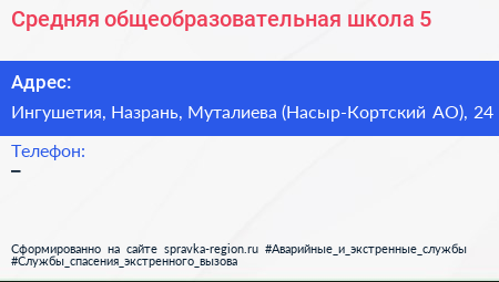 Средняя общеобразовательная школа №5 по адресу Ингушетия, Назрань, Муталиева (Насыр-Кортский АО), 24 в дальнейшем Организация, размещена в следующих категориях: