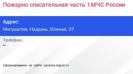 Пожарно-спасательная часть №1, МЧС России по адресу Ингушетия, Назрань, Южная, 37 в дальнейшем Организация, размещена в следующих категориях: