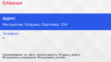 Блинная по адресу Ингушетия, Назрань, Картоева, 154 в дальнейшем Организация, размещена в следующих категориях: