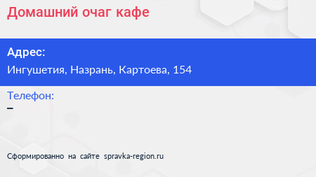 Домашний очаг, кафе по адресу Ингушетия, Назрань, Картоева, 154 в дальнейшем Организация, размещена в следующих категориях: