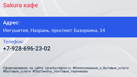 Sakura, кафе по адресу Ингушетия, Назрань, проспект Базоркина, 14 в дальнейшем Организация, размещена в следующих категориях: