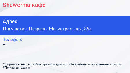 Shawerma, кафе по адресу Ингушетия, Назрань, Магистральная, 35а в дальнейшем Организация, размещена в следующих категориях: