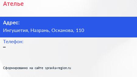 Ателье по адресу Ингушетия, Назрань, Осканова, 110 в дальнейшем Организация, размещена в следующих категориях: