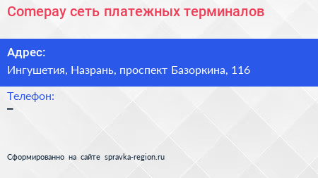 Comepay, сеть платежных терминалов по адресу Ингушетия, Назрань, проспект Базоркина, 116 в дальнейшем Организация, размещена в следующих категориях: