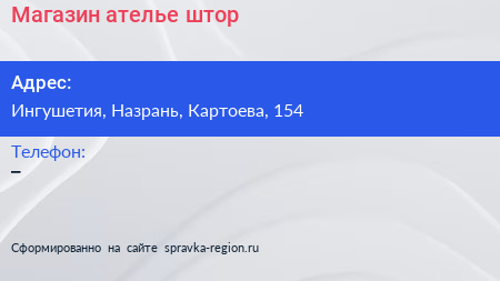 Магазин-ателье штор по адресу Ингушетия, Назрань, Картоева, 154 в дальнейшем Организация, размещена в следующих категориях:
