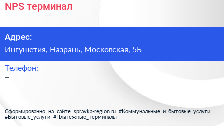 NPS, терминал по адресу Ингушетия, Назрань, Московская, 5Б в дальнейшем Организация, размещена в следующих категориях: