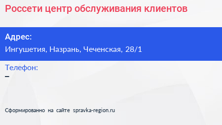 Россети, центр обслуживания клиентов по адресу Ингушетия, Назрань, Чеченская, 28/1 в дальнейшем Организация, размещена в следующих категориях: