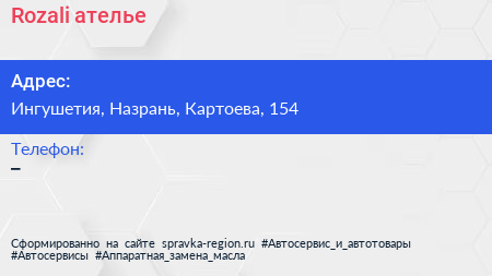 Rozali, ателье по адресу Ингушетия, Назрань, Картоева, 154 в дальнейшем Организация, размещена в следующих категориях: