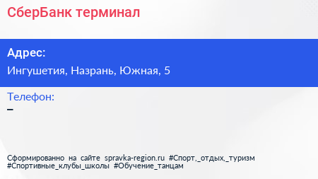 СберБанк, терминал по адресу Ингушетия, Назрань, Южная, 5 в дальнейшем Организация, размещена в следующих категориях: