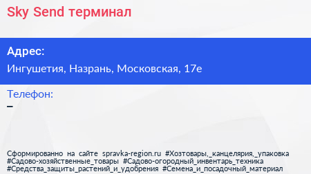 Sky Send, терминал по адресу Ингушетия, Назрань, Московская, 17е в дальнейшем Организация, размещена в следующих категориях: