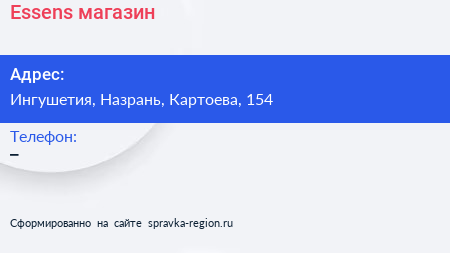 Essens, магазин по адресу Ингушетия, Назрань, Картоева, 154 в дальнейшем Организация, размещена в следующих категориях:
