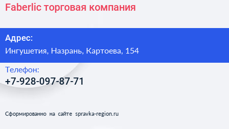 Faberlic, торговая компания по адресу Ингушетия, Назрань, Картоева, 154 в дальнейшем Организация, размещена в следующих категориях: