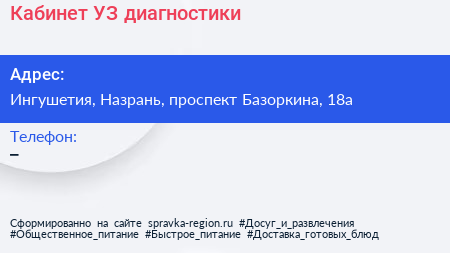 Кабинет УЗ-диагностики по адресу Ингушетия, Назрань, проспект Базоркина, 18а в дальнейшем Организация, размещена в следующих категориях: