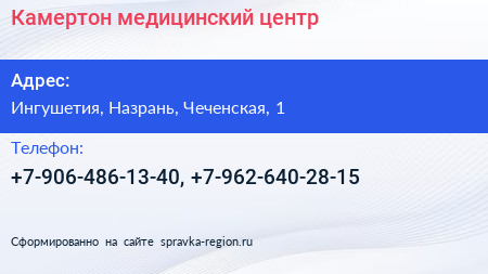 Камертон, медицинский центр по адресу Ингушетия, Назрань, Чеченская, 1 в дальнейшем Организация, размещена в следующих категориях:
