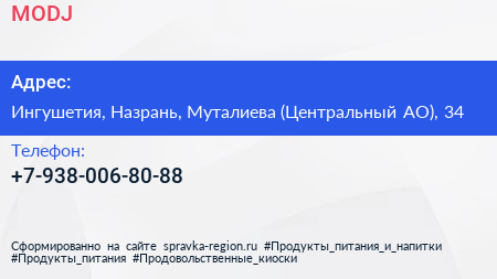 MODJ по адресу Ингушетия, Назрань, Муталиева (Центральный АО), 34 в дальнейшем Организация, размещена в следующих категориях: