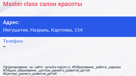 Master-class, салон красоты по адресу Ингушетия, Назрань, Картоева, 154 в дальнейшем Организация, размещена в следующих категориях: