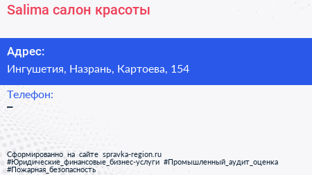 Salima, салон красоты по адресу Ингушетия, Назрань, Картоева, 154 в дальнейшем Организация, размещена в следующих категориях: