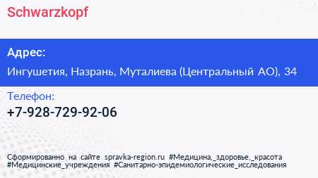 Schwarzkopf по адресу Ингушетия, Назрань, Муталиева (Центральный АО), 34 в дальнейшем Организация, размещена в следующих категориях: