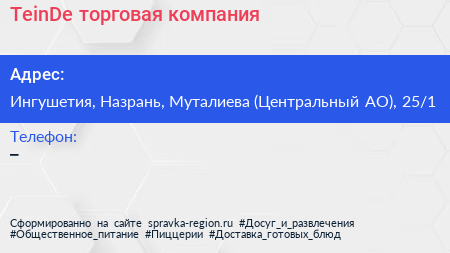 TeinDe, торговая компания по адресу Ингушетия, Назрань, Муталиева (Центральный АО), 25/1 в дальнейшем Организация, размещена в следующих категориях: