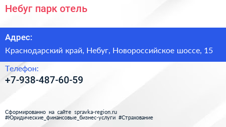 Небуг, парк-отель по адресу Краснодарский край, Небуг, Новороссийское шоссе, 15 в дальнейшем Организация, размещена в следующих категориях: