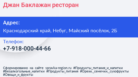 Джан Баклажан, ресторан по адресу Краснодарский край, Небуг, Майский посёлок, 2Б в дальнейшем Организация, размещена в следующих категориях: