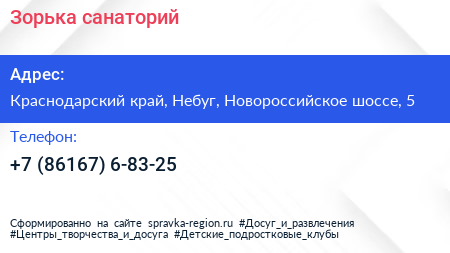 Зорька, санаторий по адресу Краснодарский край, Небуг, Новороссийское шоссе, 5 в дальнейшем Организация, размещена в следующих категориях: