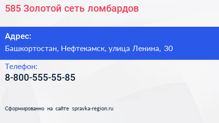585*Золотой, сеть ломбардов по адресу Башкортостан, Нефтекамск, улица Ленина, 30 в дальнейшем Организация, размещена в следующих категориях: