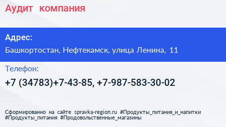 Аудит+, компания по адресу Башкортостан, Нефтекамск, улица Ленина, 11 в дальнейшем Организация, размещена в следующих категориях: