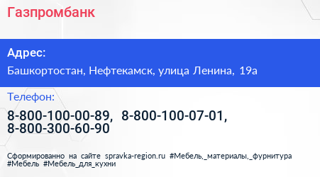 Газпромбанк по адресу Башкортостан, Нефтекамск, улица Ленина, 19а в дальнейшем Организация, размещена в следующих категориях: