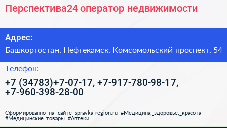 Перспектива24, оператор недвижимости по адресу Башкортостан, Нефтекамск, Комсомольский проспект, 54 в дальнейшем Организация, размещена в следующих категориях:
