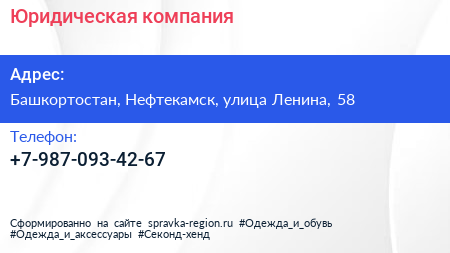 Юридическая компания по адресу Башкортостан, Нефтекамск, улица Ленина, 58 в дальнейшем Организация, размещена в следующих категориях: