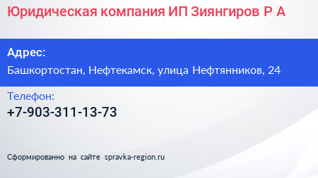Юридическая компания, ИП Зиянгиров Р.А. по адресу Башкортостан, Нефтекамск, улица Нефтянников, 24 в дальнейшем Организация, размещена в следующих категориях: