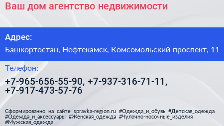 Ваш дом, агентство недвижимости по адресу Башкортостан, Нефтекамск, Комсомольский проспект, 11 в дальнейшем Организация, размещена в следующих категориях: