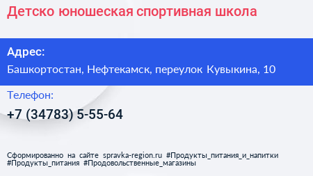 Детско-юношеская спортивная школа по адресу Башкортостан, Нефтекамск, переулок Кувыкина, 10 в дальнейшем Организация, размещена в следующих категориях: